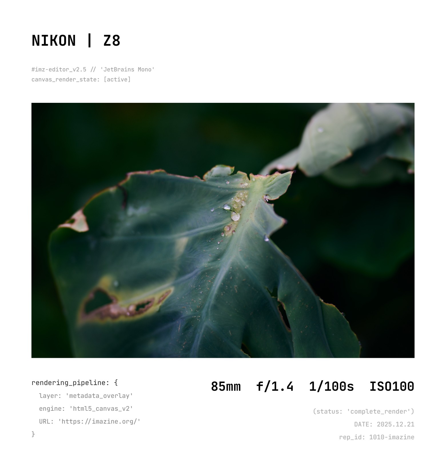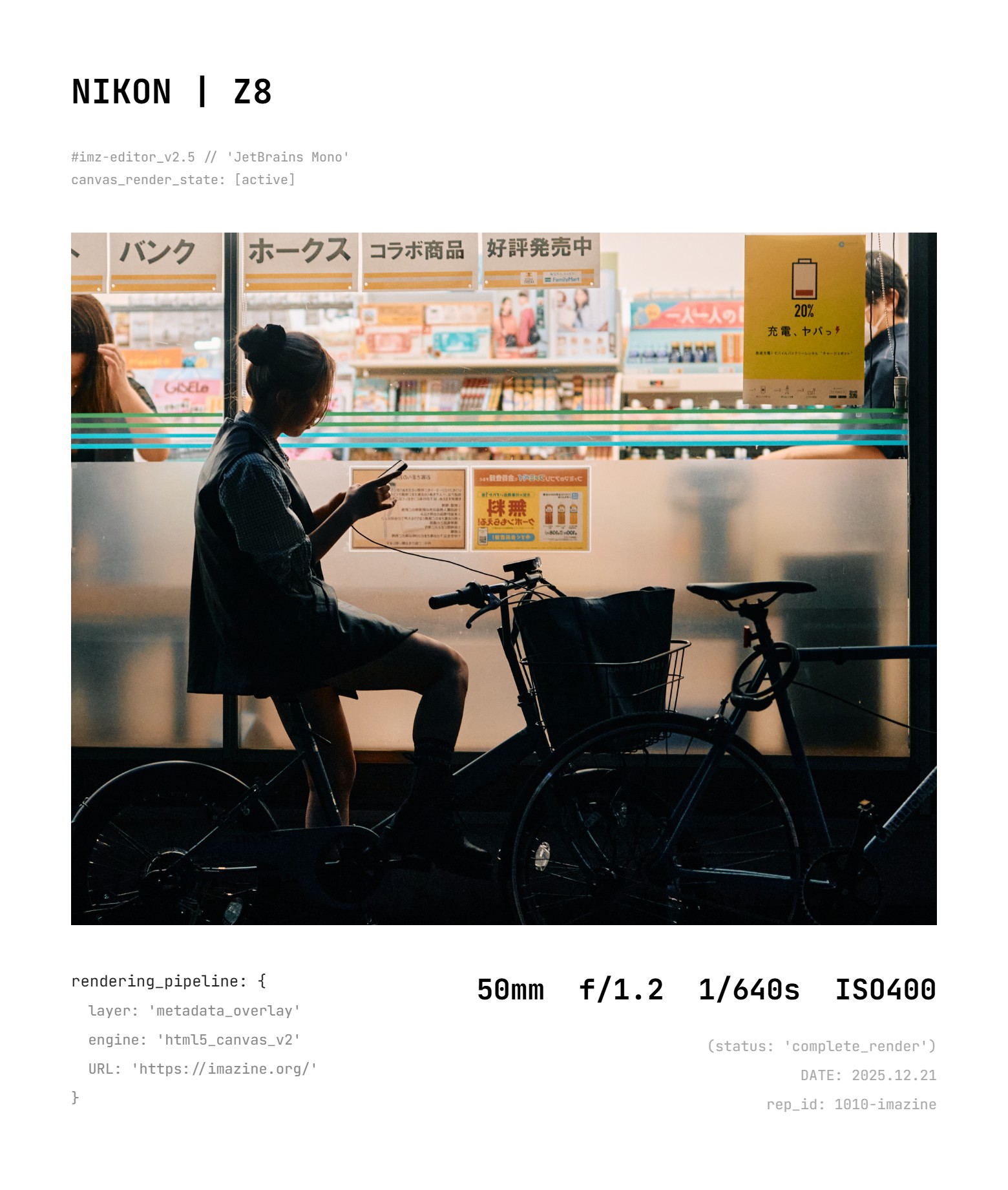 写真白枠フレーム imzFlame 2025 12/21 All Kurashi; Artwork Gadget; Camera 2025-12-202025-12-21 imzFlame MAKER MODEL FONT JetBrains Mono Fira Code Inter Space Grotesk Jost Montserrat Jakarta Sans MODE AUTO EXIF DUMMY PHOTO ONLY SELECT IMAGE FILE SAVE IMAGE Sample All Kurashi; Artwork Gadget; Camera この記事が気に入ったら フォローしてね! Follow @NlPece シェア・フォローよろしくお願いします! URLをコピーしました!